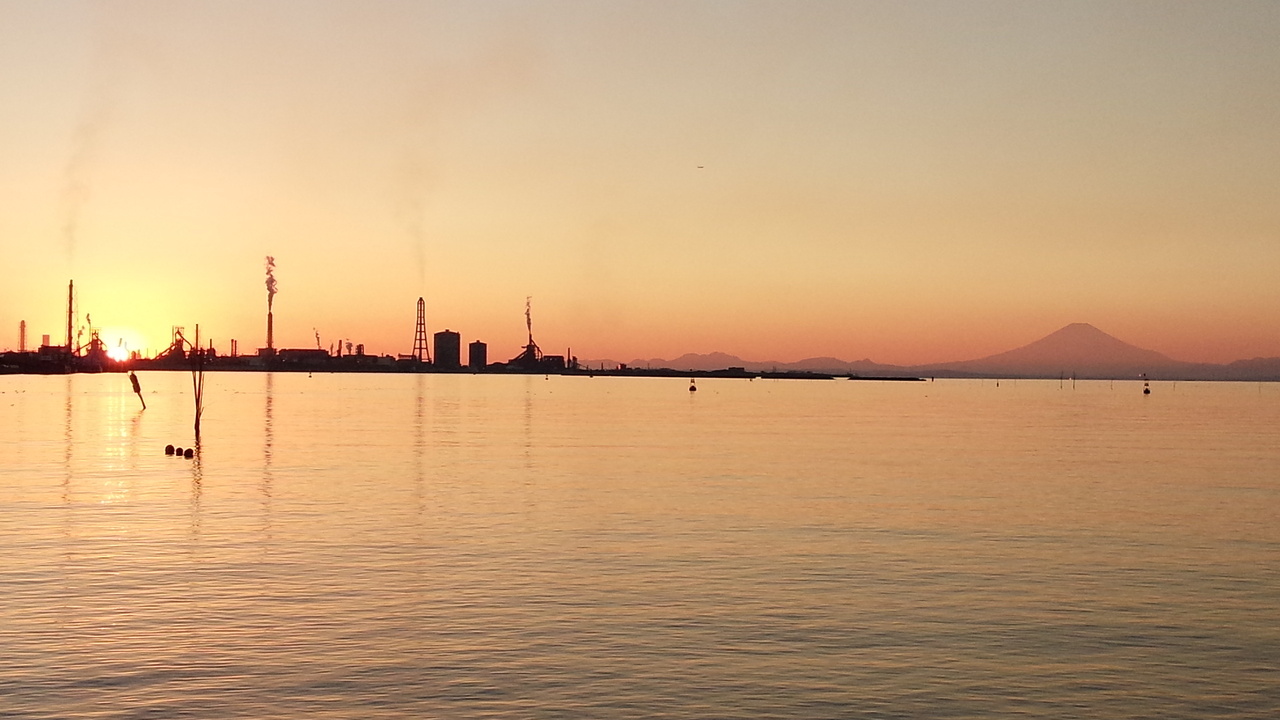 木更津港の近くで赤い橋がある公園です。冬は海のそばなので風がありすごく寒いのですが天気が良ければ夕日に照らさる富士山とコンビナートの景色がとても綺麗なので行って見ましたが、元日の夕方は橋の上から景色を見ている人もたくさんいました。