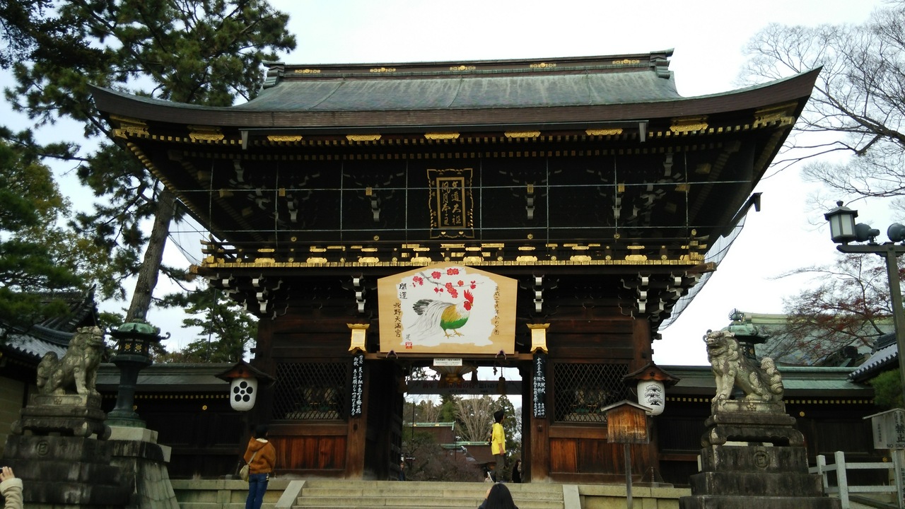菅原道真公をまつった学問の神様として知られています。太宰府天満宮、防府天満宮にも行きましたが、ここでも神丑がまつってありました。迎春準備で、立派な楼門に大きな絵馬が飾られていました。梅がたくさん植えられていて、2月には見頃を迎えそうでした。