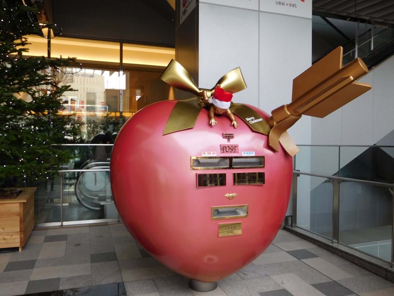 JR博多駅 博多口を出て左側にある商業施設です。ちょうど、JR博多駅前広場では、クリスマスマーケットが開催されていたので、KITTEも大勢の人で混雑していました。入口に設置してある、エンジェルハートの郵便ポストも、クリスマスバージョンになっていました。今回は、1階の入口付近に期間限定で出店していたワゴンでスイーツを買いましたが、レストランフロア うまいと(umai x eat)も充実してそうなので、機会があれば、行ってみたいと思いました。