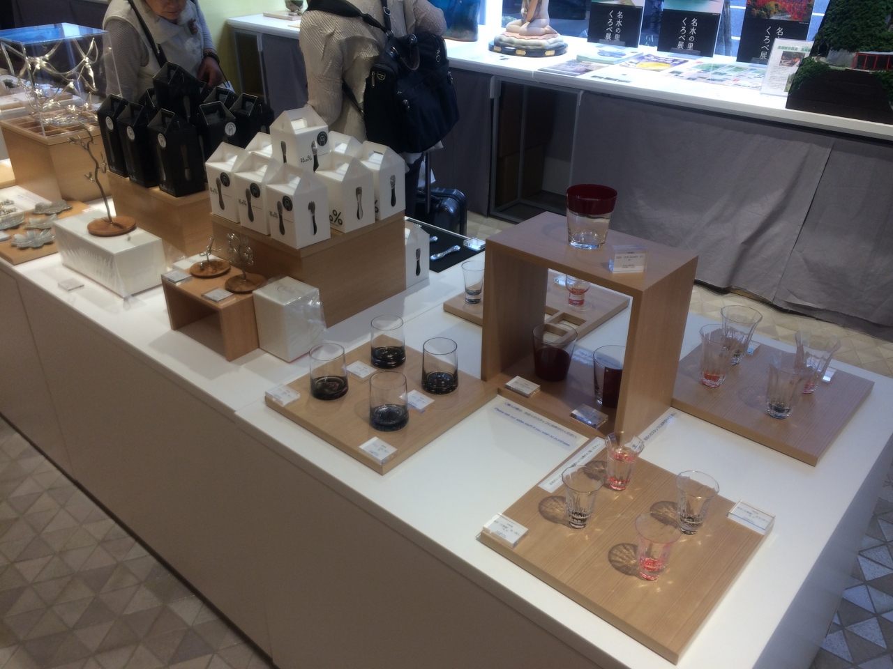 この日は富山の工芸品をイベントコーナーにて販売していましたが、不定期でいろいろな地場産品の牡展示があるようです。また、地酒試飲コーナーもあり、三色セット¥750をいただきましたが、いろいろなチョイスができるみたいで好みの地酒を探せそうです。