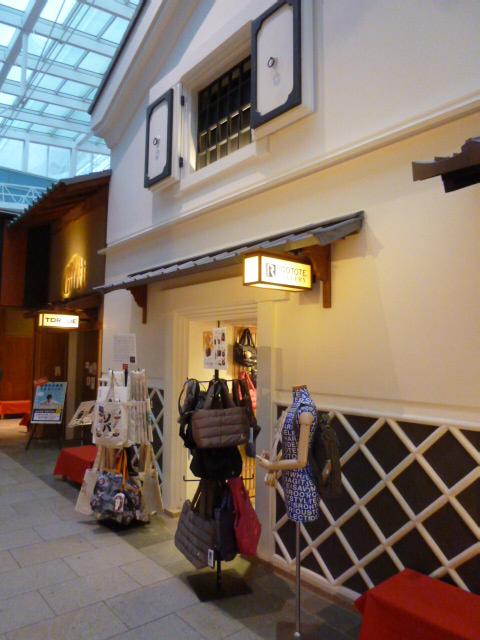 羽田空港国際線ターミナルのショッピングエリア「江戸小路」の一画にあるトートバッグのお店が「ROOTOTE GALLERY」です。初めて見た名前で、しかも蔵造り風の外観に興味を惹かれ覗いてみました。店内は意外とお手頃なお値段のトートバックが豊富で、女性向けのデザインが中心です。