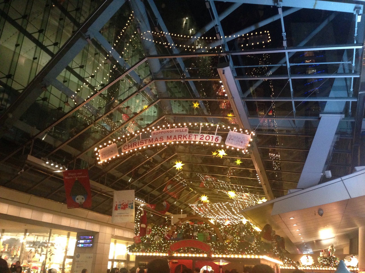 六本木ヒルズの中庭で行われているイベント。可愛らしい小屋が幾つか並び クリスマスグッズの店、軽食やワイン等の販売がされています。