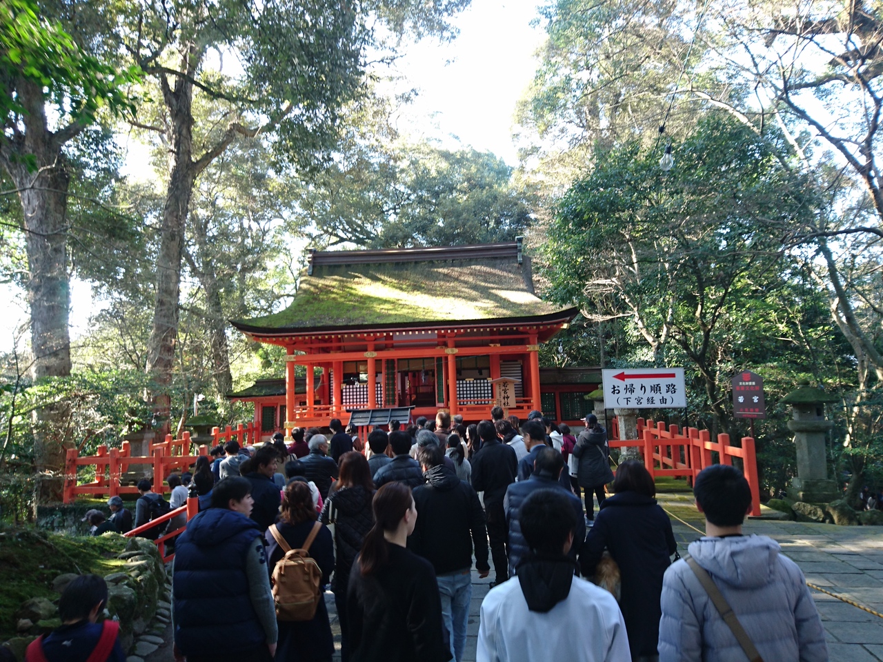 ここも赤と白、そして檜皮葺きの苔むした屋根で綺麗です。
