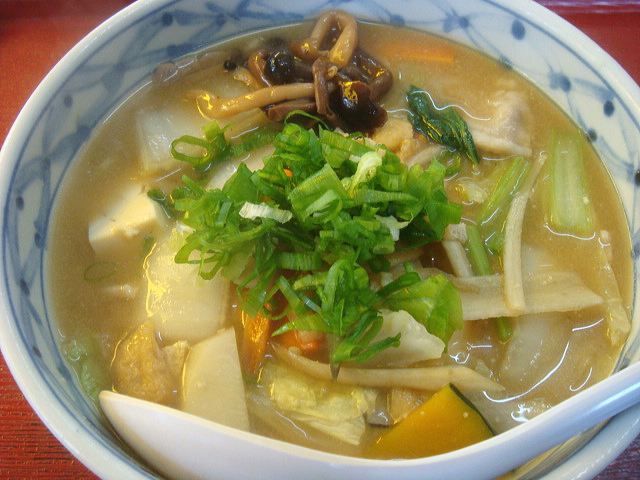 本業は食堂なので、もちろんお店の中では普通のメニューもいただけます。お蕎麦やおうどん、カレーやどんぶりものなどがありますが、変わったところではチャンポンやだんご汁なんかも。こちらのだんご汁はカタマリではなく、きしめんのような平打ちになっているのが特徴です。
