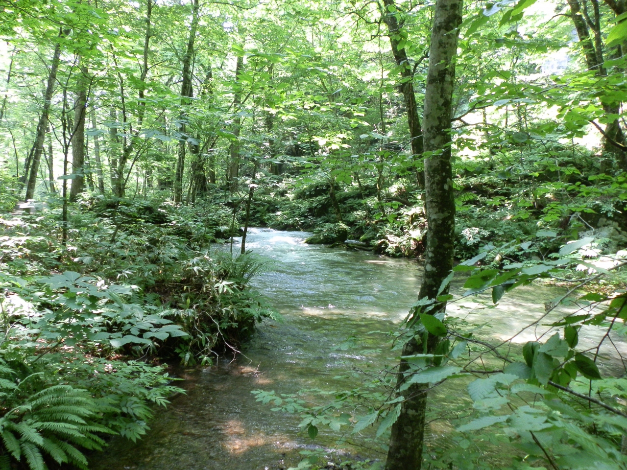 十和田湖から渓流に沿って歩くも良し、焼山・石ヶ戸側から十和田湖に向って歩くも良し、約13.8km はほぼ平坦な渓流です。「流れ」の迫力を見たい場合は下流から歩くべきでしょう。