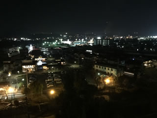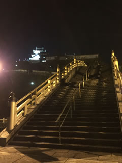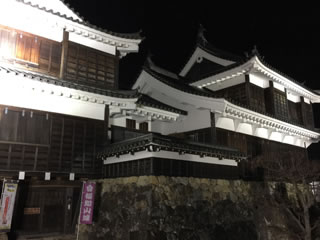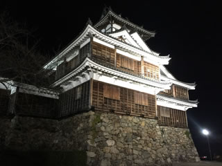 福知山市内の中心部、駅からも徒歩15分程度で着きます。天守閣は再建されたものらしいです。お城の中は福知山藩の資料館になっています。4階が最上階で、最上階からの景色は、由良川の流れや山々、城下が望め、まさに絶景です。夜間のライトアップもとてもきれいです。