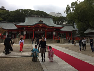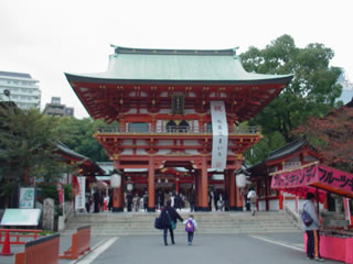 三宮駅から歩いて5分。繁華街の一角にある有名な神社です。縁結びの神社としても有名で、結婚式も多く行われております。この日もたまたまでしたが、結婚式をされておられました。こんな場面に出くわすと、幸せをおすそわけしてもらえたうようで嬉しいですね。