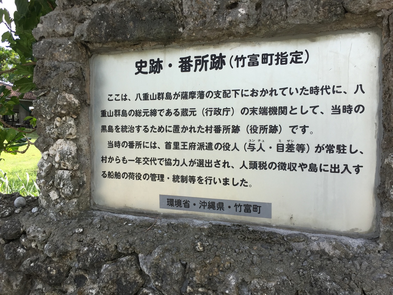 黒島の宮里海岸に入る手前にあります。史跡・番所跡との説明書きがあり、昔は役所があったことがうかがえます。公共施設であり、中には無料で入場できます。黒島の自然や文化などをわかりやすく説明した展示などがあり、黒島をしるにはよい施設です。