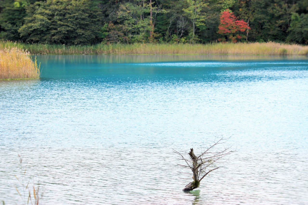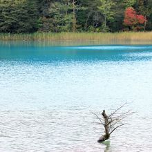 丸太で組んだ展望台がありましたが、高さが中途半端で湖面の色が撮りづらかった。