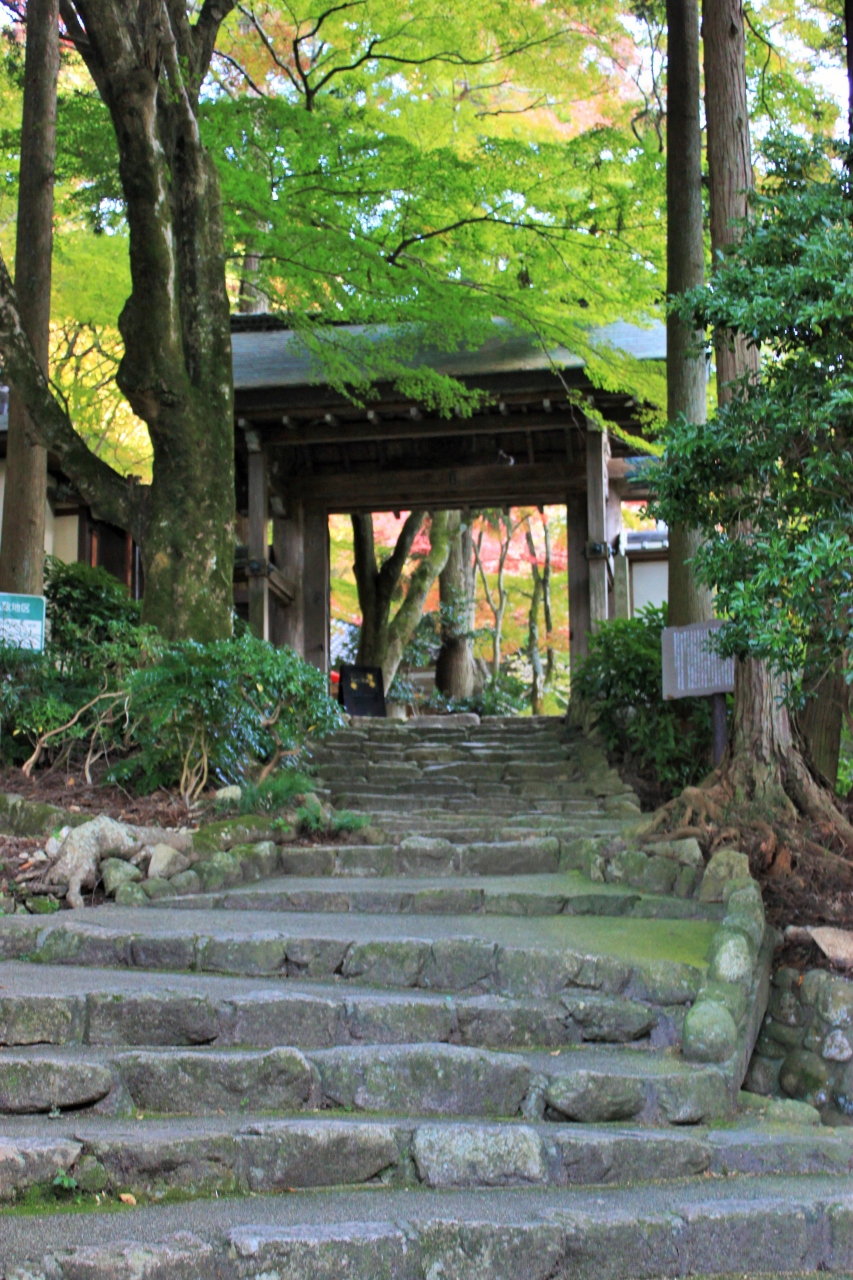 雰囲気のある山門の向こうの紅葉は少し色づき始めたばかりでした。