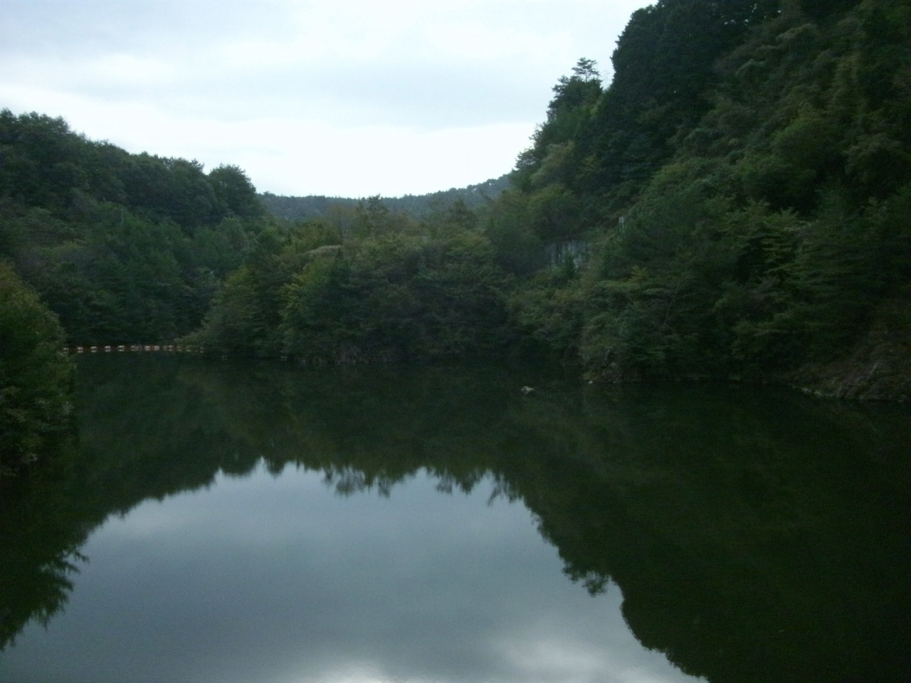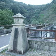 ダム堤体の端には、石灯篭が立っていて普通の橋のようにデザインされていて、車も通行が可能です。小規模なダムで高さも低く、ダム堤体上から下流側を覗いてもそれほど迫力はありませんが、オリフィスからはしっかり放流している姿が観えました。