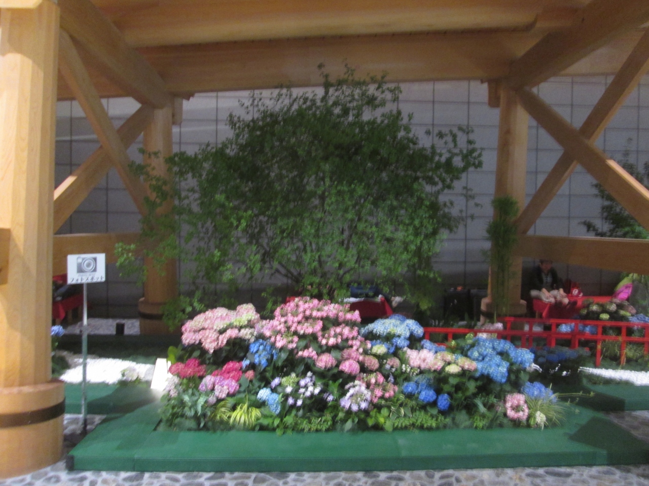 6月の羽田空港には紫陽花の飾りが施されていました。はねだ日本橋のあらゆるポイントに赤、白、ピンク、黄色の花が咲いており、見学だけでも楽しむことができました。夜は一部のポイントできれいにライトアップされてきれいでした。