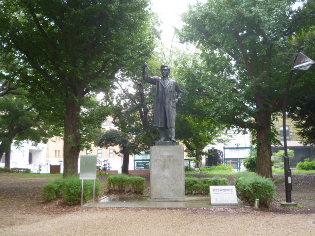 林の中にひっそりと置かれた、試験管を手にした野口英世像。野口英世は貧しい家庭に生まれ、苦学して進学し医学を学びます。アフリカに渡り黄熱病のワクチン開発の端緒を開くなどの実績を残しますが、自らも病に感染して客地で亡くなりました。それにしても公園のもう少し人目に付く場所にあれば良いのにと思いますね。林の中にあってほとんどの人は気が付かないと思います。私も、科学博物館からショートカットで上野公園の噴水方面に行こうとした際に偶然発見しました。