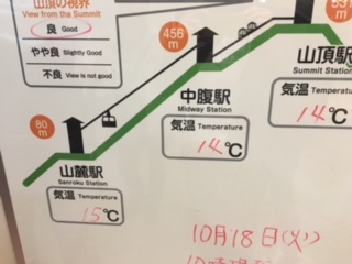 中腹の駅から乗換えし山頂駅に行くゴンドラです