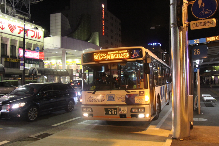 往路は阿蘇くまもと空港から水前寺公園前まで、復路は交通センターから阿蘇くまもと空港まで利用しました。空港リムジンですが、途中停車も多く路線バスも兼ねた感じです。