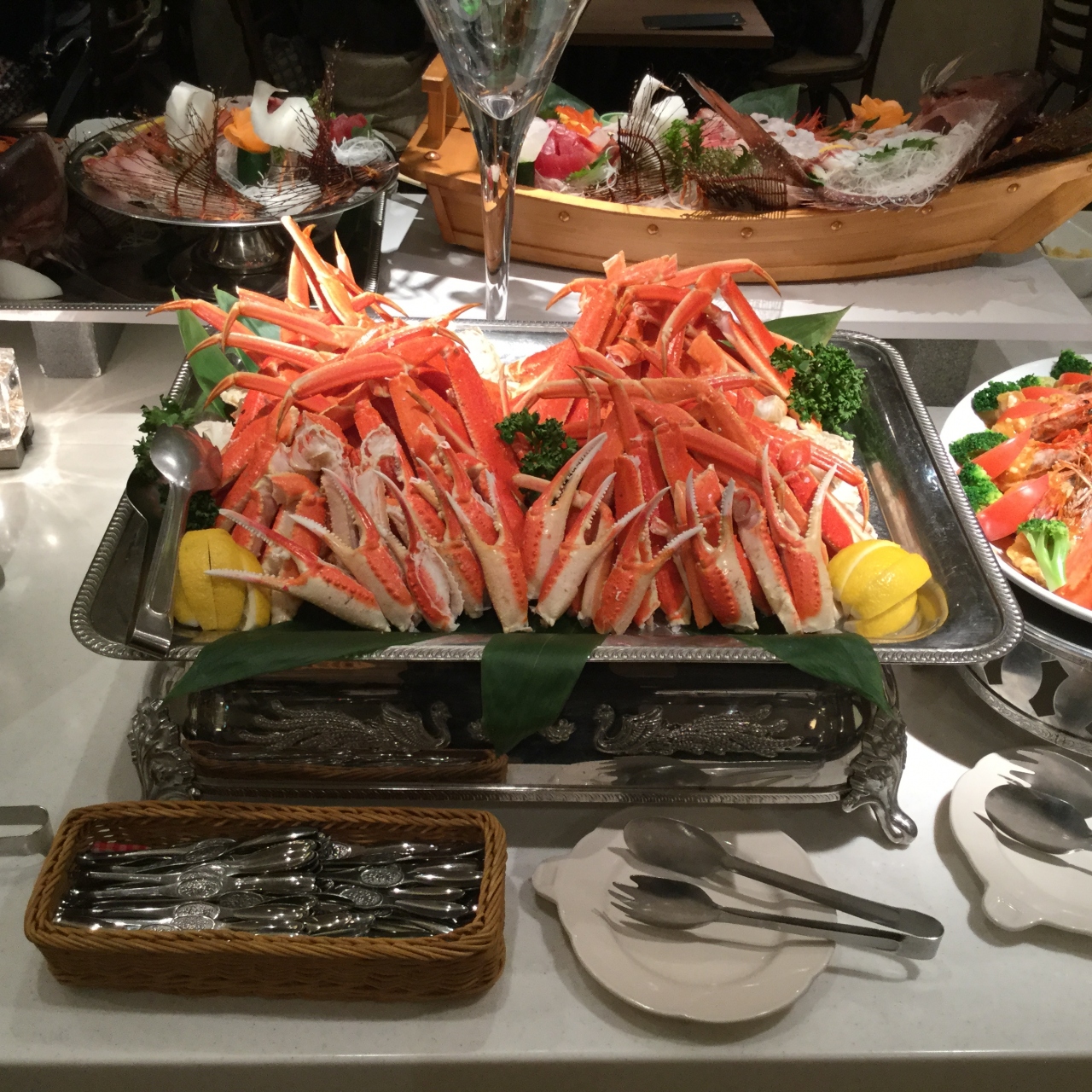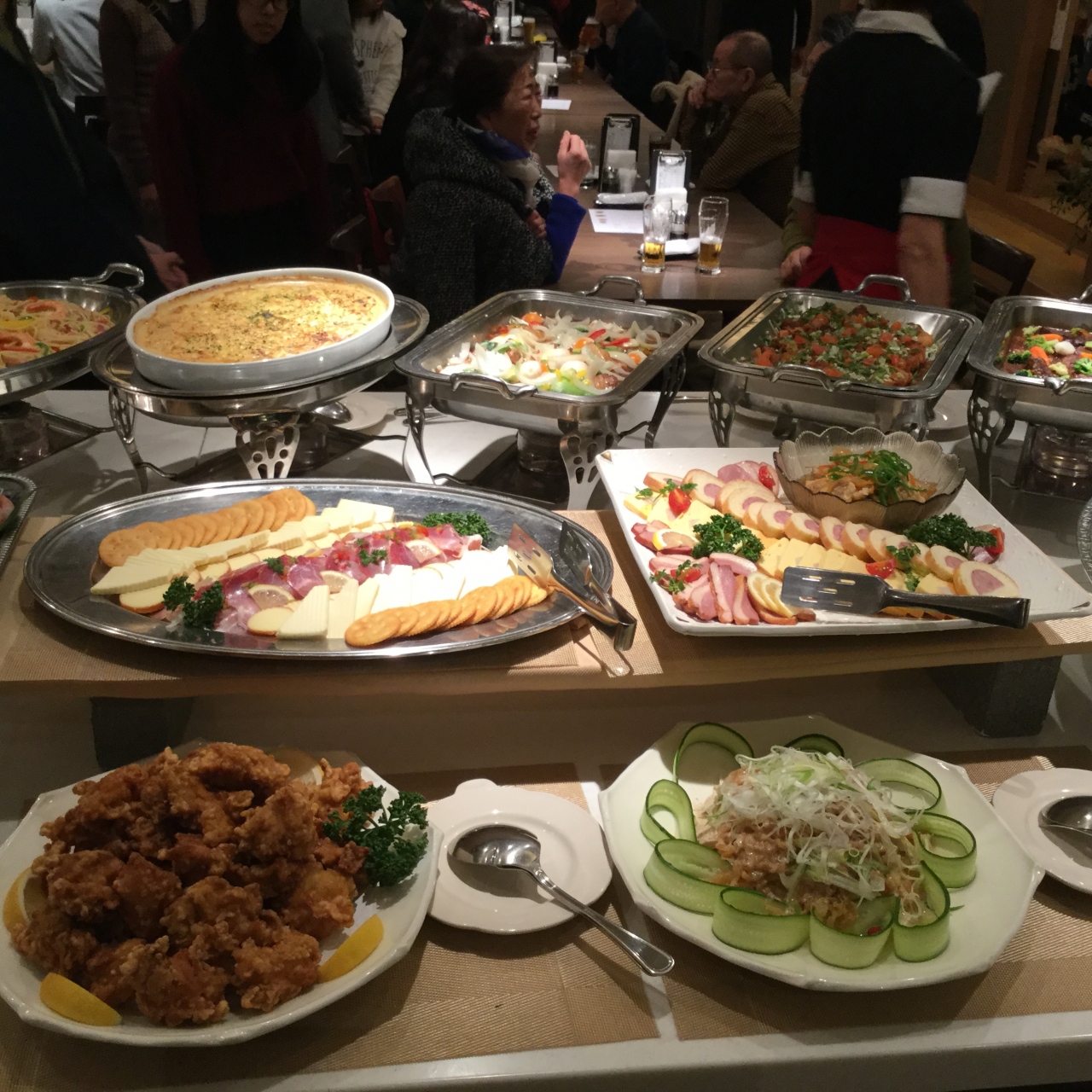 蟹や刺身船盛、和食、洋食、中華、など豪華な料理大人5000円子供2500円<税別>安いですよ。18時から食事がスタートして19時にビンゴ大会がスタート食べながら飲みながら楽しく豪華な賞品がズラリ!温泉ペアー宿泊券や電化製品、たらこ、蟹。いくら、ちゃんこ鍋セット、焼肉セット、お米10キロ、果物せっと、みかん5キロなど90品をゲットしょうと90名のお客が必死に挑戦。