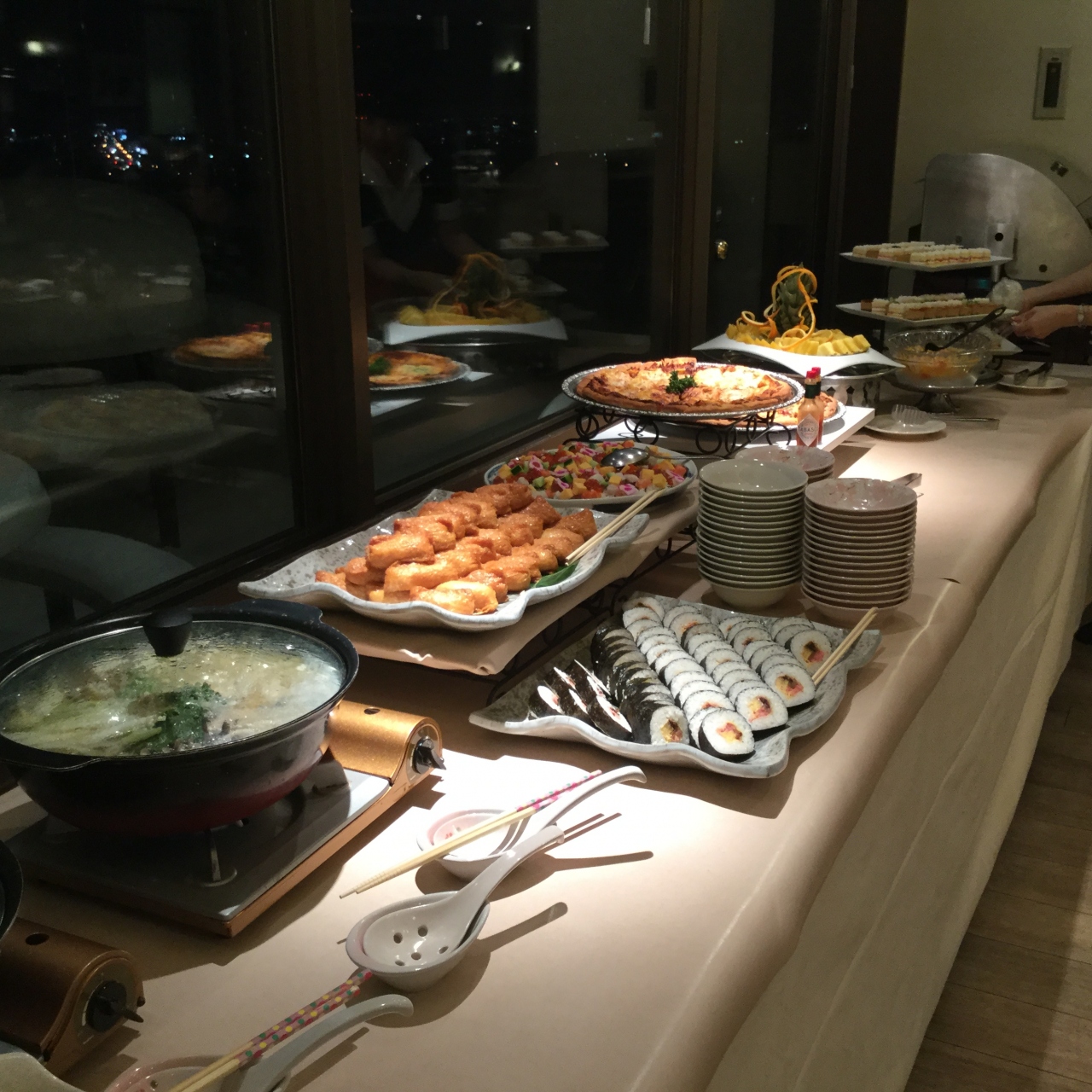 - ホテルの最上階で展望レストランガラス張り