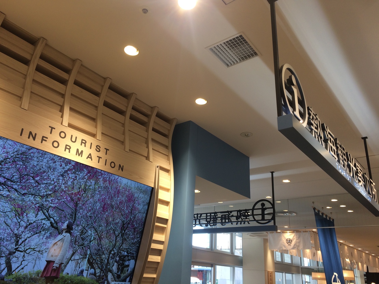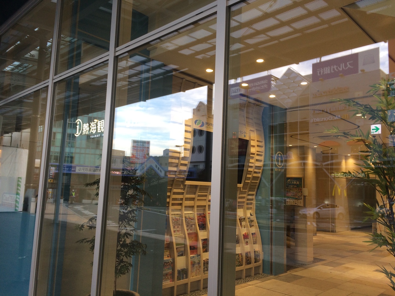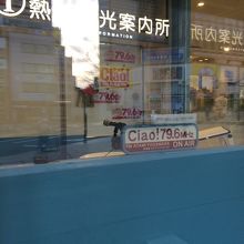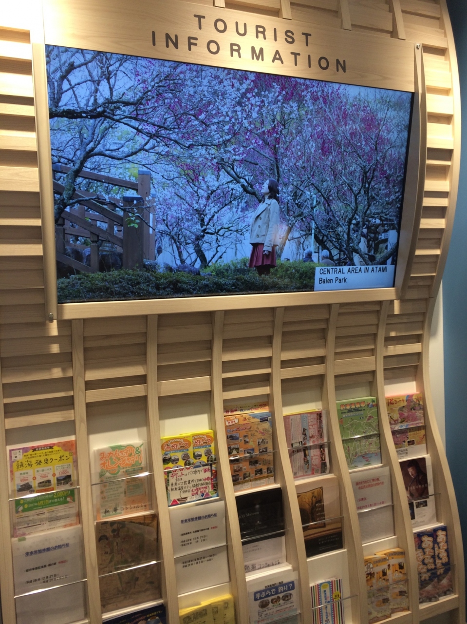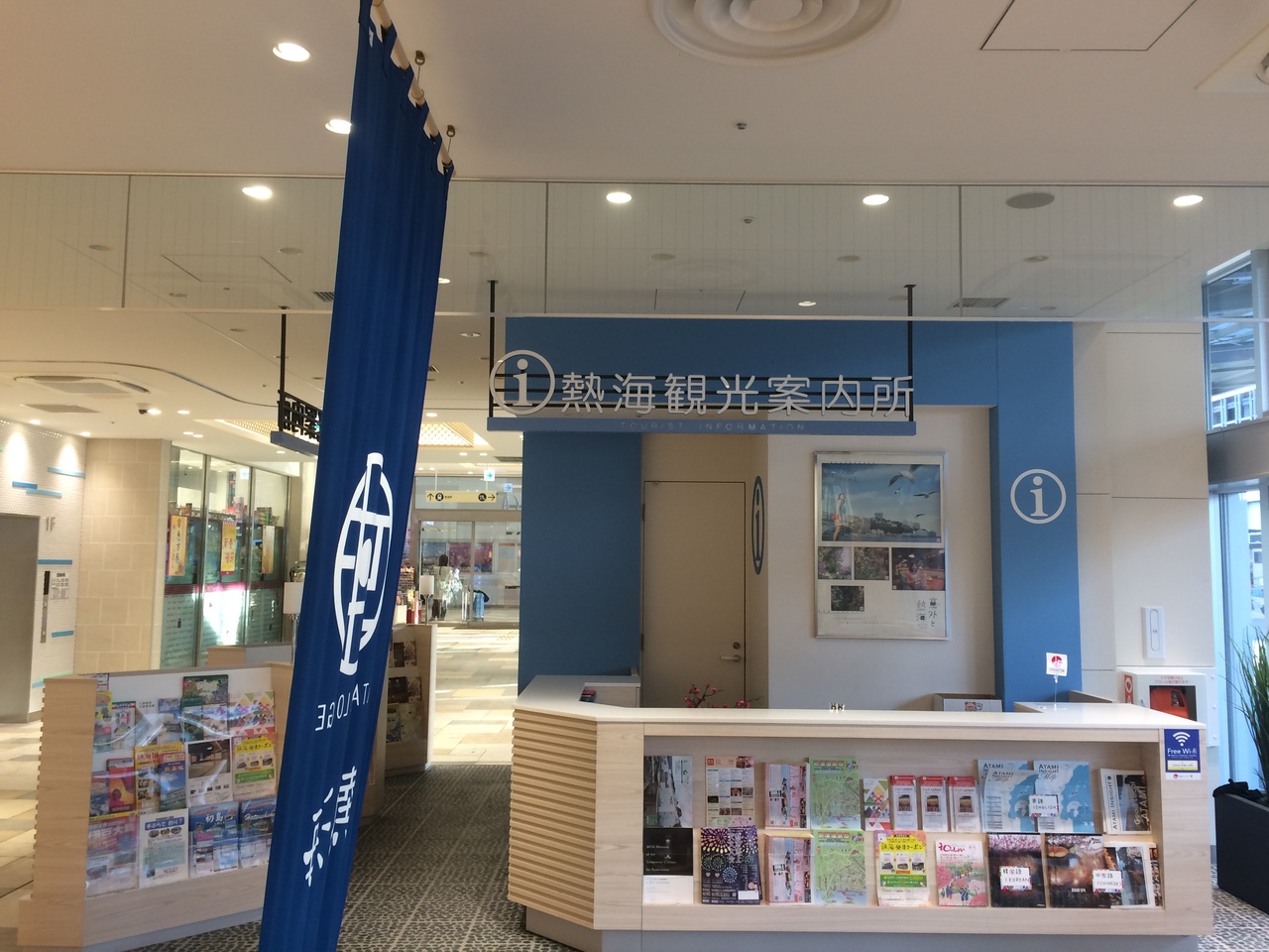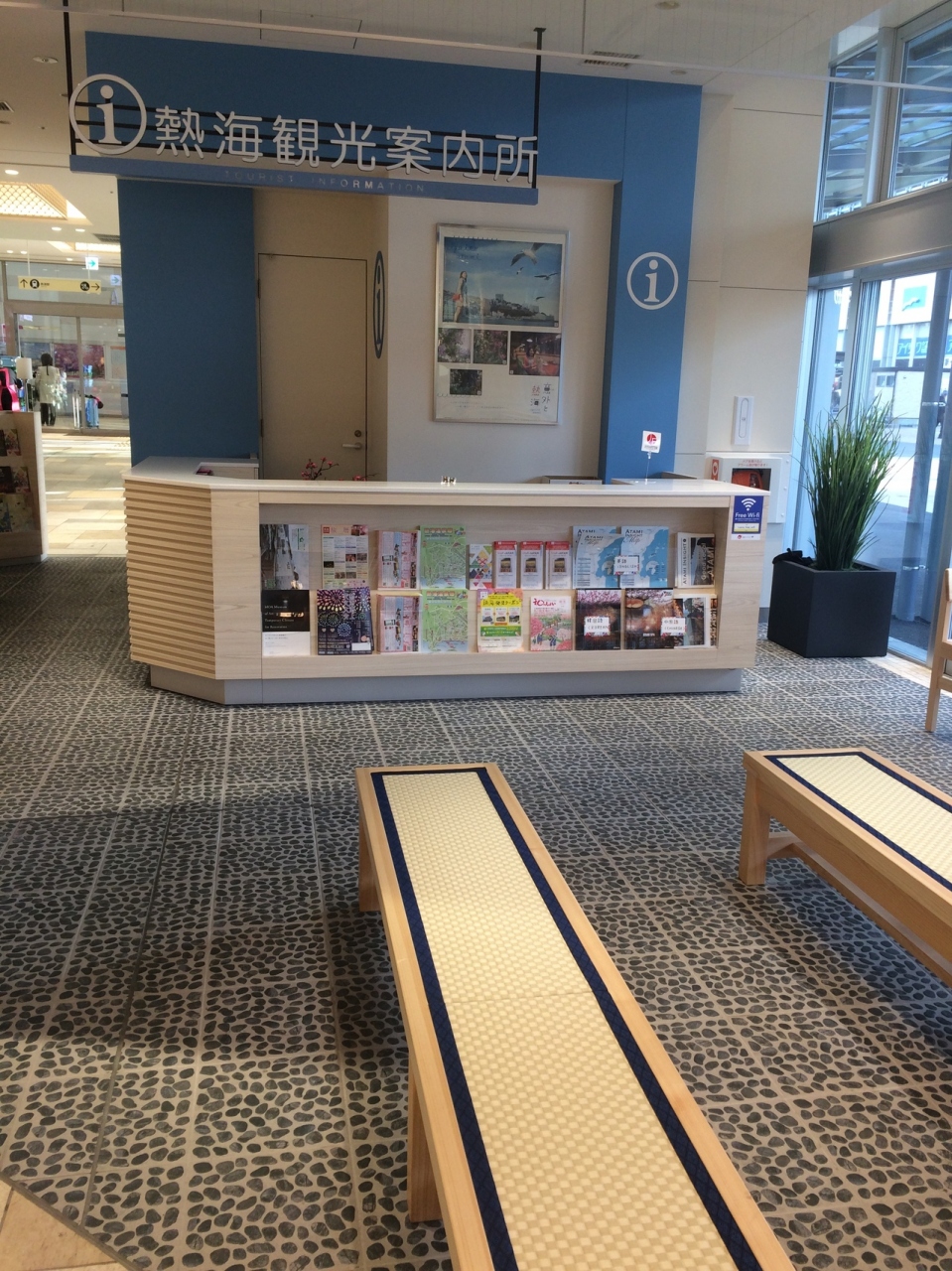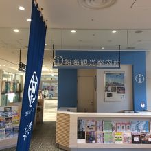 熱海駅改札出て右側のルスカ内1階にあり、市内の地図を入手しました。案内人も3人いて熱海の観光パンフレットが置いてあり外国語版の地図もあります。案内所の前には椅子とテーブルがあり座って地図を見ることが出来ました。駅改札からルスカの土産屋に繋がる通りにあるので休日は人でごった返しています。