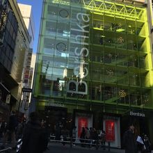 緑の外観がとても目を引くこの店はセンター街にあります。ヨーロッパのファストファッションのお店ですか値段的には思ったよりもそこまで安くなかったです。デザインは若い子向けなのでですがごく1部シンプルなシックなウエアーも売っていました。高所恐怖症の私は上のほうに行く階段がとても強かったです。