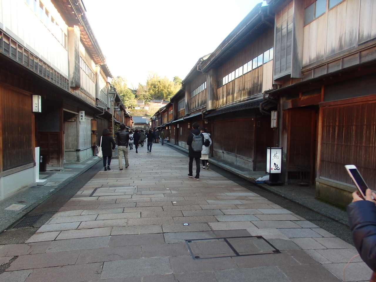 観光の雑誌に掲載されていた写真が和風に華やかだったので、半日予定の金沢観光を兼六園とこの茶屋街にしました。文字通りお城の東側にあるのですが、兼六園から歩くには遠く、一旦駐車場を出て周辺の駐車場を探したのですが近くはどこも満車でこの移動時間だけで半時間以上かかりました。