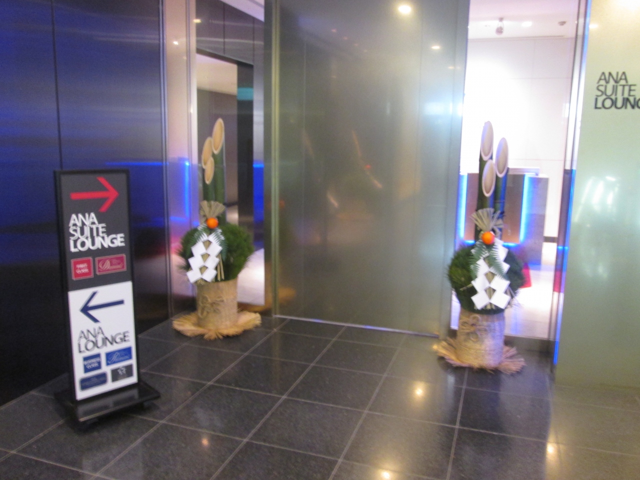 クリスマスが終わり、年末のANAスイートラウンジのエントランスに門松が飾られていました。12/27の夜は世間一般の冬季休暇が開始前のようで、ラウンジは若干空いていました。2017年が明けて、1/6の夜にも利用しましたが、門松は撤去されていました。季節を感じるラウンジです。