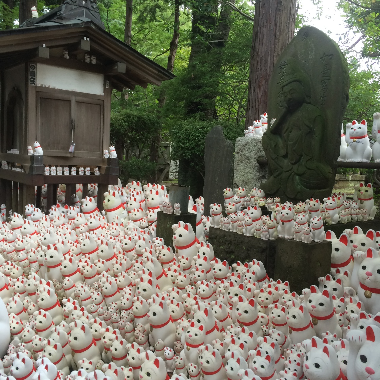 招き猫発祥の地で有名な豪徳寺。猫好きなのでぜひ見てみたいと思い、行ってみました。写真で知ってはいましたが、実際に大勢の招き猫を目前にするとちょっと怖かったです。笑