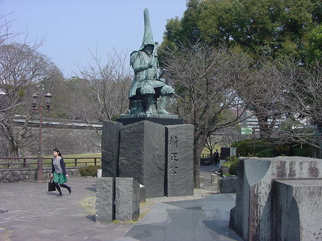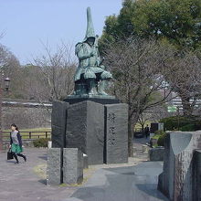 名城と呼ばれ、多くの観光客が訪れる熊本城。その外に加藤清正像があります。青銅色をした立派なもので、座像になっているのもユニーク。市電の電停から熊本城に向かうときに見ることになるでしょう。記念撮影している人もいました。
