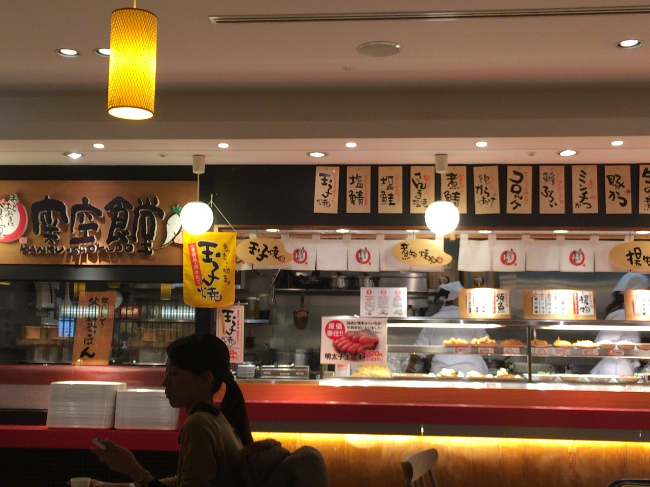 大阪の関西国際空港内にある食堂です。第一ターミナル2Fのダイニングコート町家小路内にあります。フードコートのようになっていて、自分の好きなものを取って行ってお会計をして机に運んで食べるというシステム。