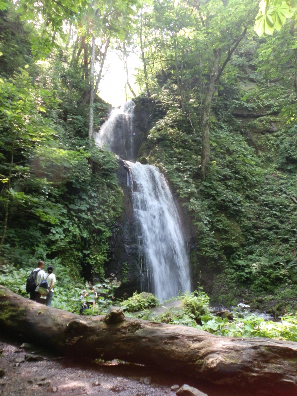 「千筋の滝」から「銚子大滝」間では穏やかな渓流の右岸・左岸に次々に展開する様々な滝と渓流の競演を堪能しつつ子の口へ向かいます。