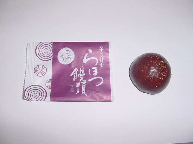 奈良市内にある、地元でも人気の菓子店でお饅頭を買いました。その名も「らほつ饅頭」。個別のパッケージになっているので、お土産としても喜ばれます。食べてみると、外は黒糖でコーティングされていて、柔らかいかりんとうのような食感。つぶあんの甘さもほどよいものでした。
