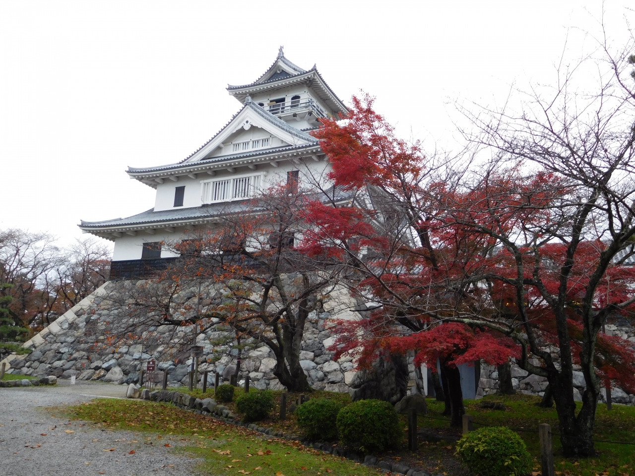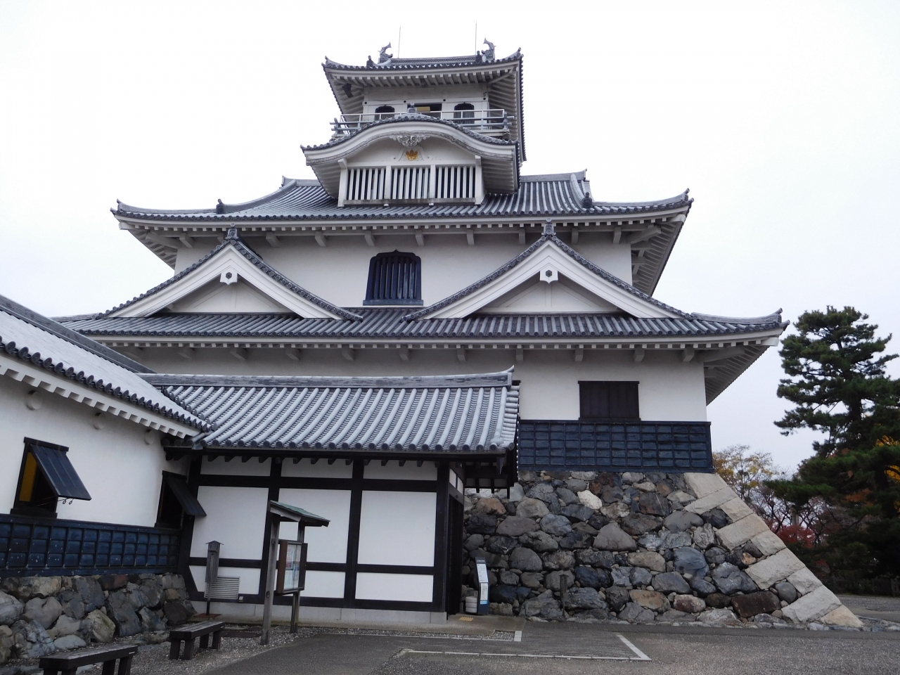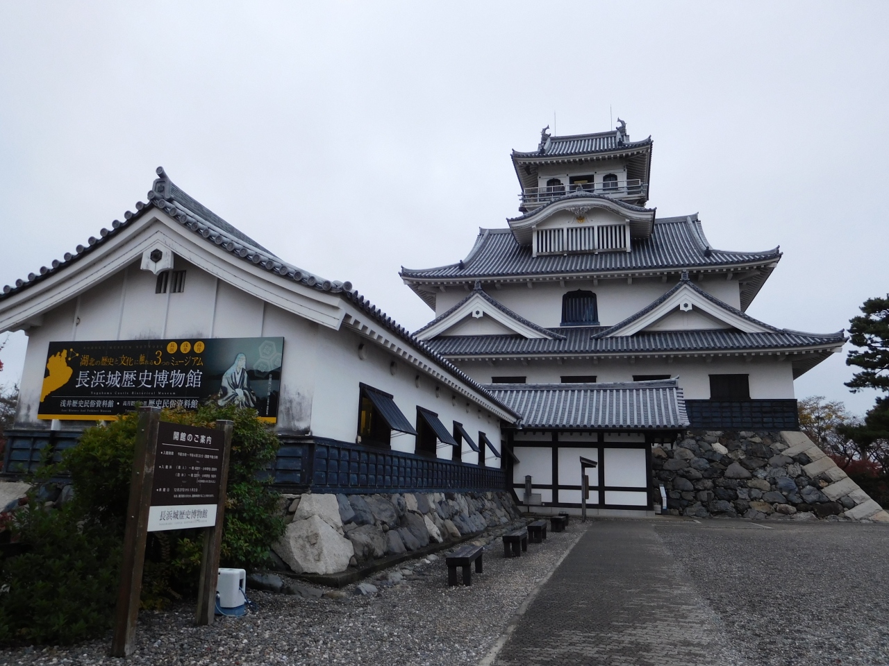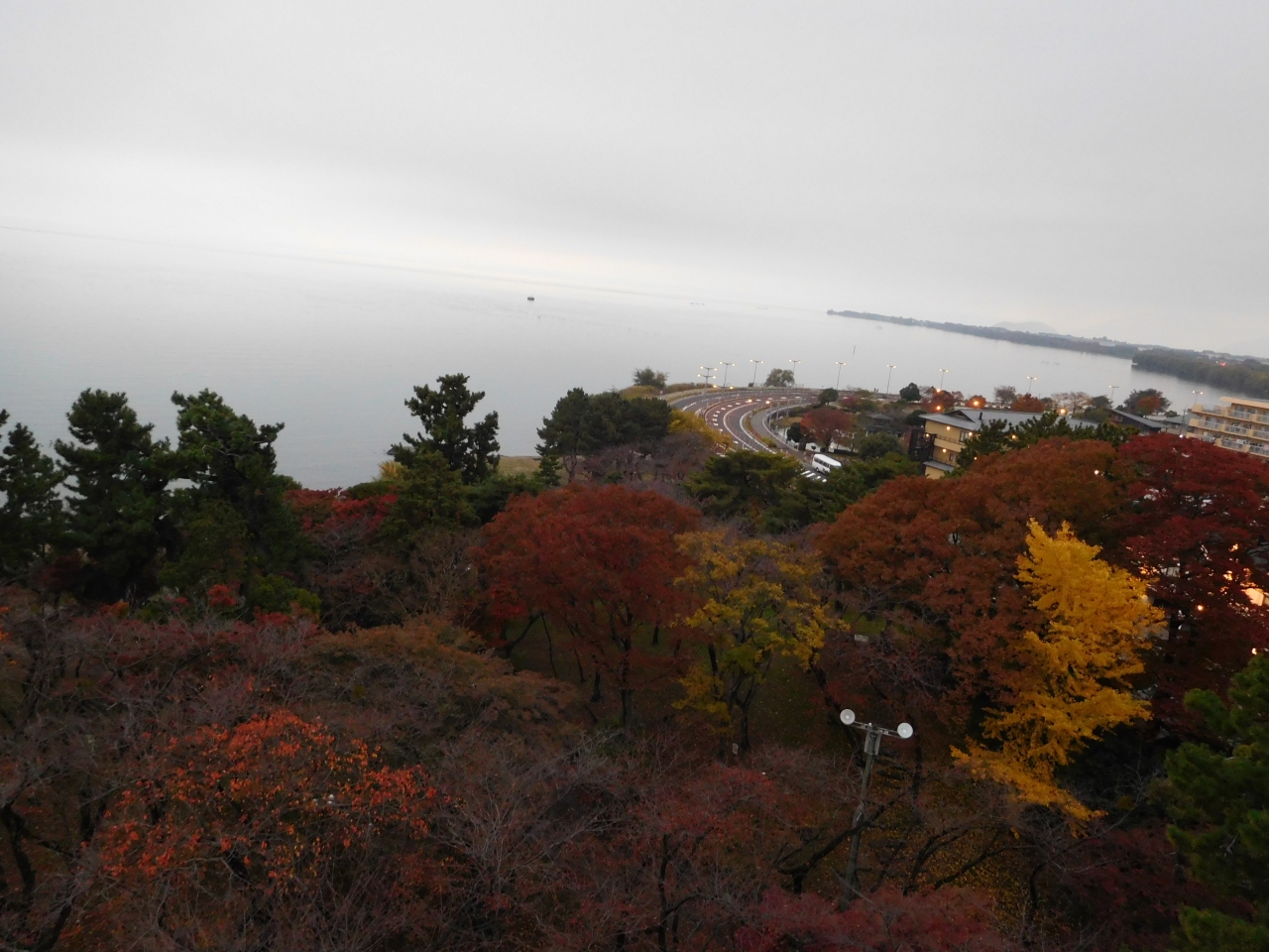 安土桃山時代の城郭を模して建てられた復元天守で、館内は歴史博物館になっています。2階と3階の展示室を見て、5階のパノラマ展望台に上がると、琵琶湖が見渡せ、豊公園の木々が紅葉しているのが見え、とても景色が良かったです。