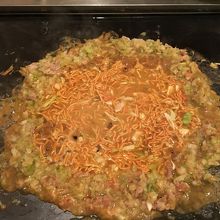 もんじゃ焼き750円とあり、トッピングのメニューがなかったが、聞くと用意してくれた。