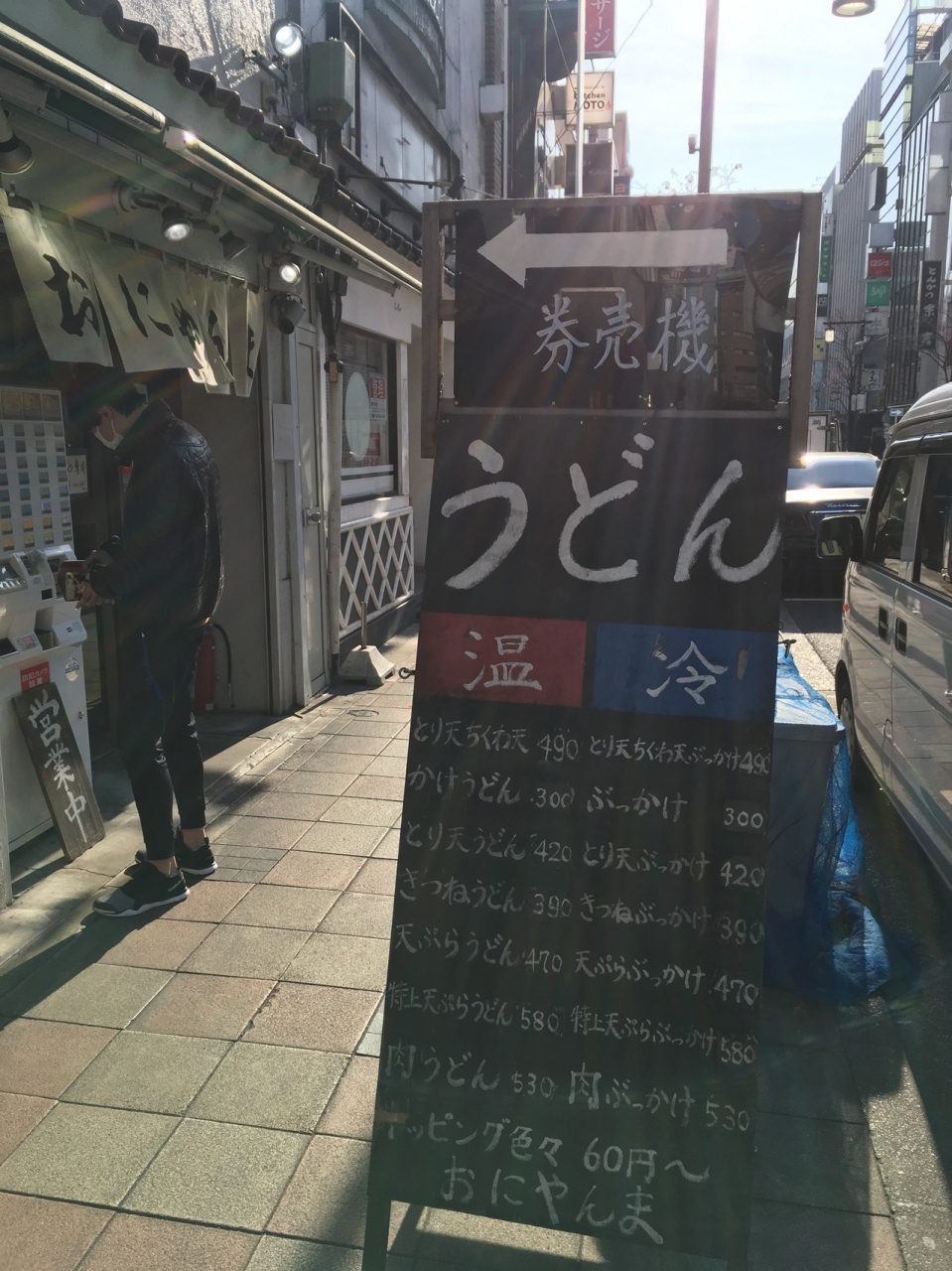 立ち食いうどんの有名店。とりちくわ天温490円。外で食券を買い、中で並んで待つ。1、2分で出てくる。天ぷらは揚げたてだけど、麺は結構時間が経っているのか、コシはあるけど艶がない。なんか硬いだけのような…出汁は薄い色だが、かなりしょっぱい。とり天は胡椒の味付けが美味しいが、2回目はなさそう。
