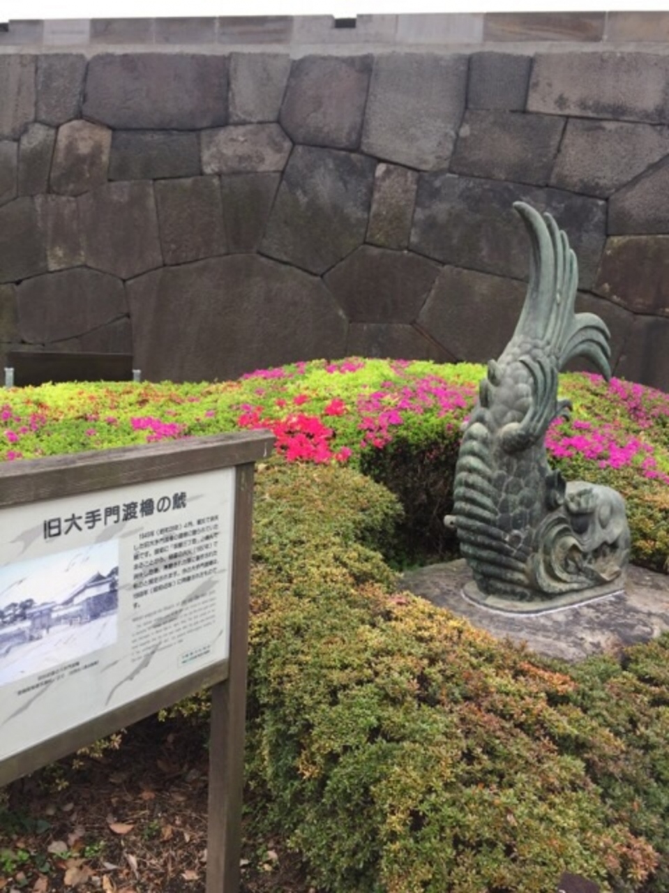 1945年に戦災で消失した旧大手門渡櫓の屋根に飾られていた鯱になります。大手門の近くに展示されています。
