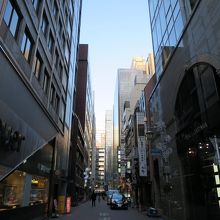 銀座ソニービルや銀座熊本館の裏側、晴海通りからみゆき通りまで、100mもない通りです。割と狭い通りの両側に高いビルが並び、昼でもすこし薄暗い感じがします。それも有ってか他の通りと比べ人通りも少なく、有名店もなく、数寄屋橋交差点に近い一等地なのにも関わらず寂れた感じがします。