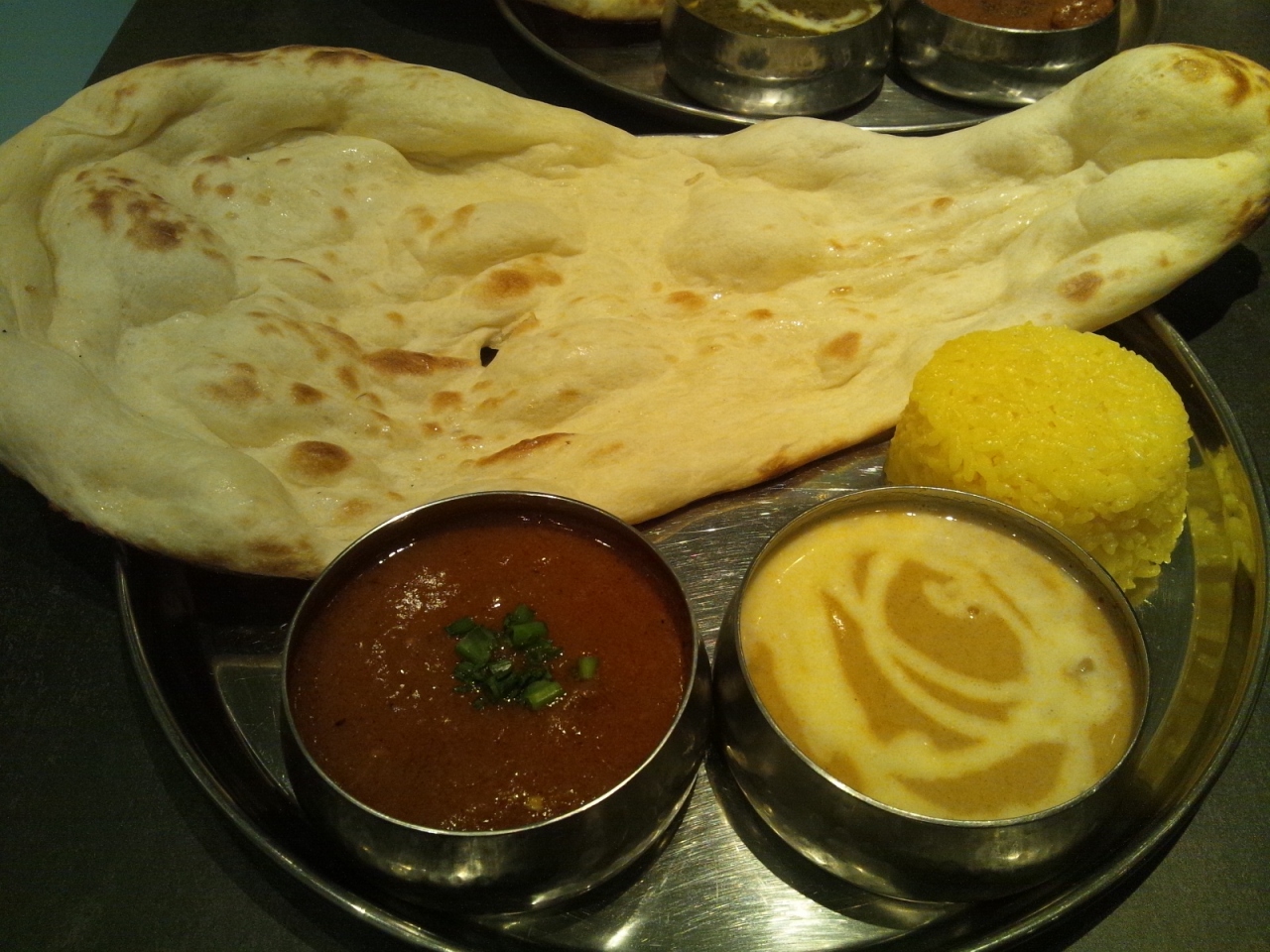 カレーセットは3種類あり、それぞれカレーを1種類、2種類、3種類を選べ、ナンと少しのサフランライスがついてきます。