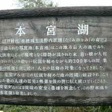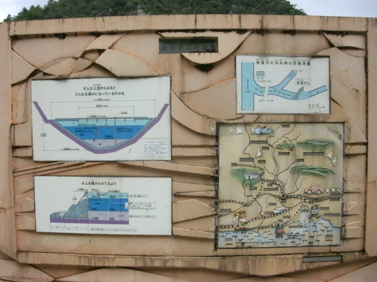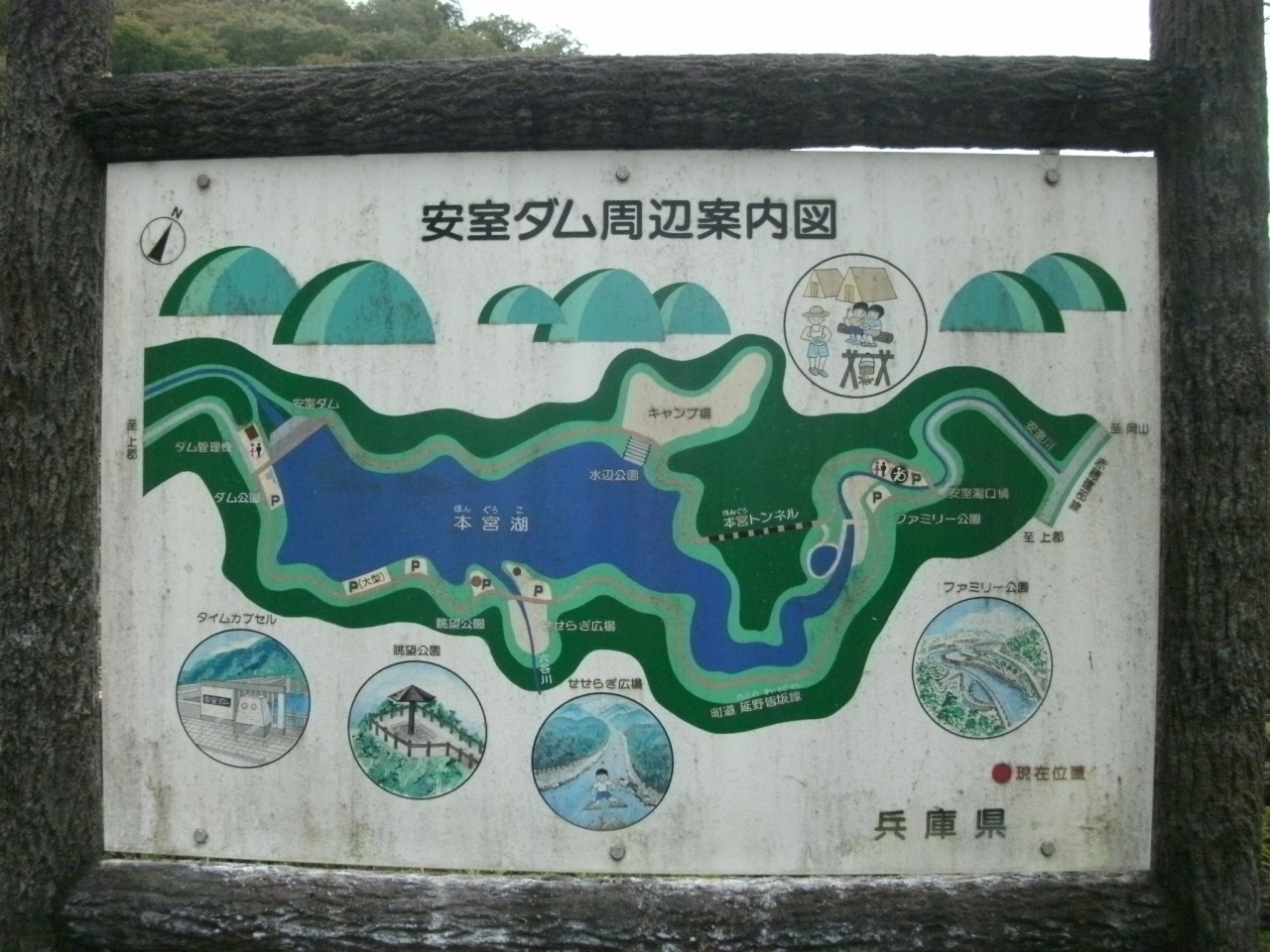 ダムによって造られた人造湖は“本宮湖”とよばれているそうで、現地にある説明板には『江戸時代、赤穂藩主浅野内匠頭の命により造られた鳳宮池(本宮池)ががあったが、ダムにより水没。昔の人達の苦労と熱意を後世に伝え、安室ダムによる流域の安全と豊穣を祈念して、その名を残し本宮湖と名づけた。』とありました。