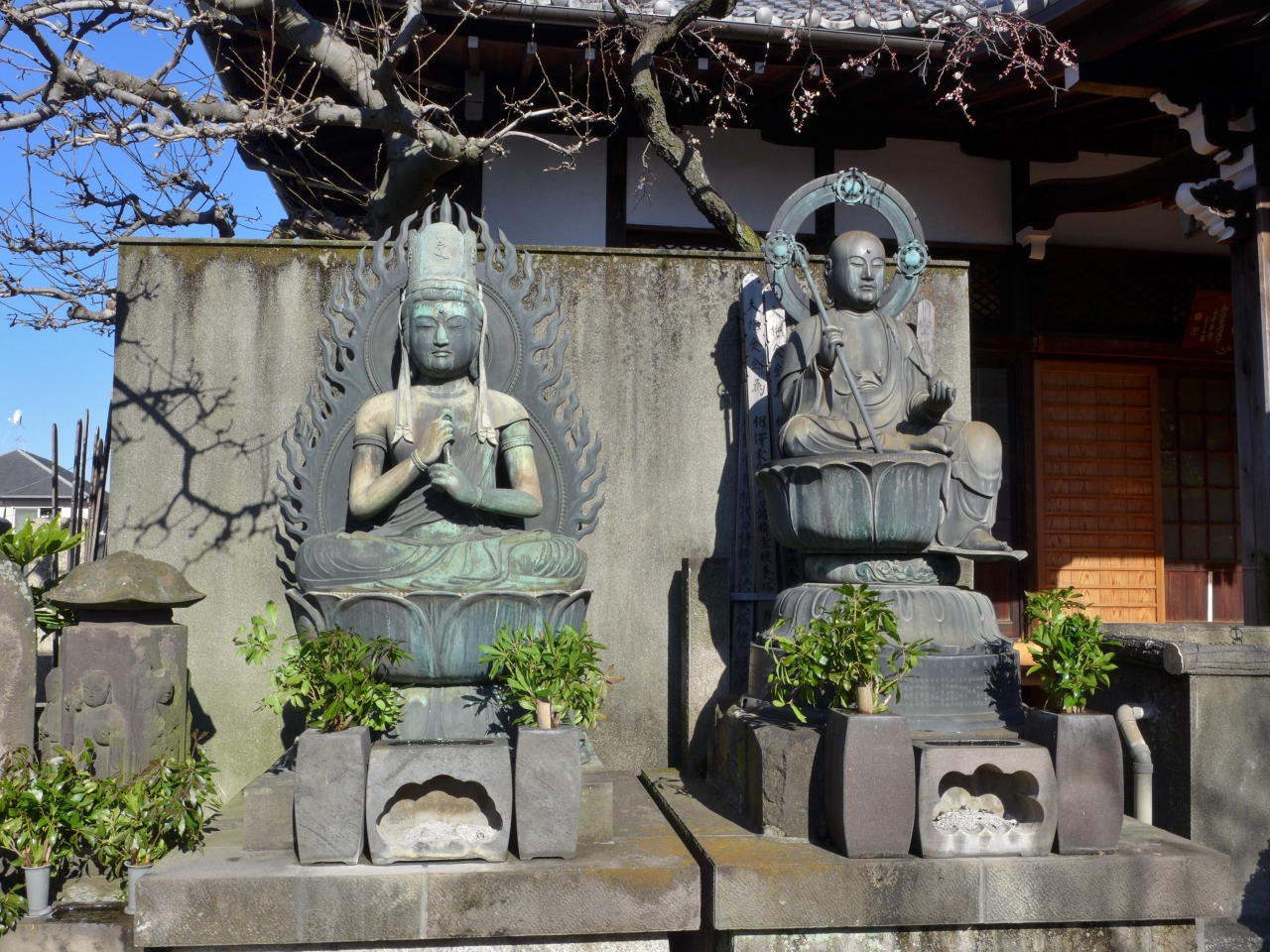 本堂の脇には露座の金銅仏や地蔵菩薩像、古い石仏が置かれ、七福神が無くてもご利益が得られそうな気がしました。