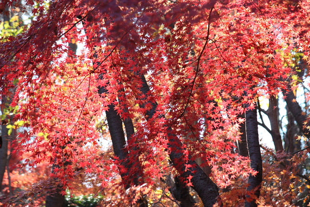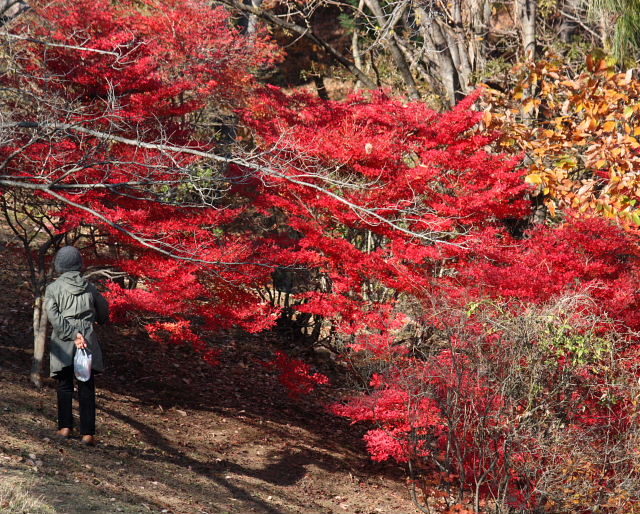 お目当ての野鳥はそれほど見られませんでしたが、真っ赤な紅葉が見事でした。