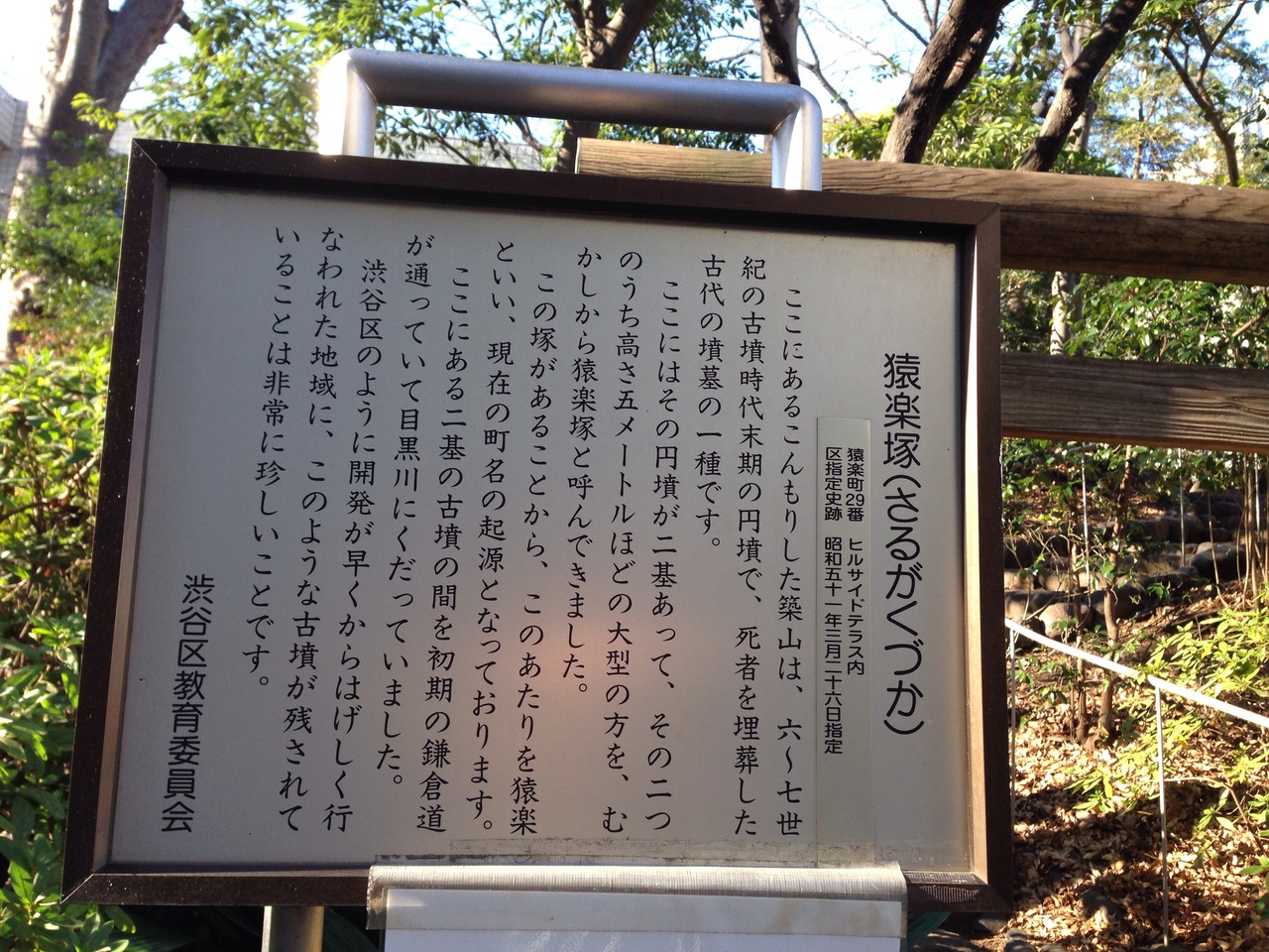 古墳だったここは大変歴史のあるもの。二期あった古墳の大きなものが猿楽塚と呼ばれていて そこから猿楽町の地名となったそうです。