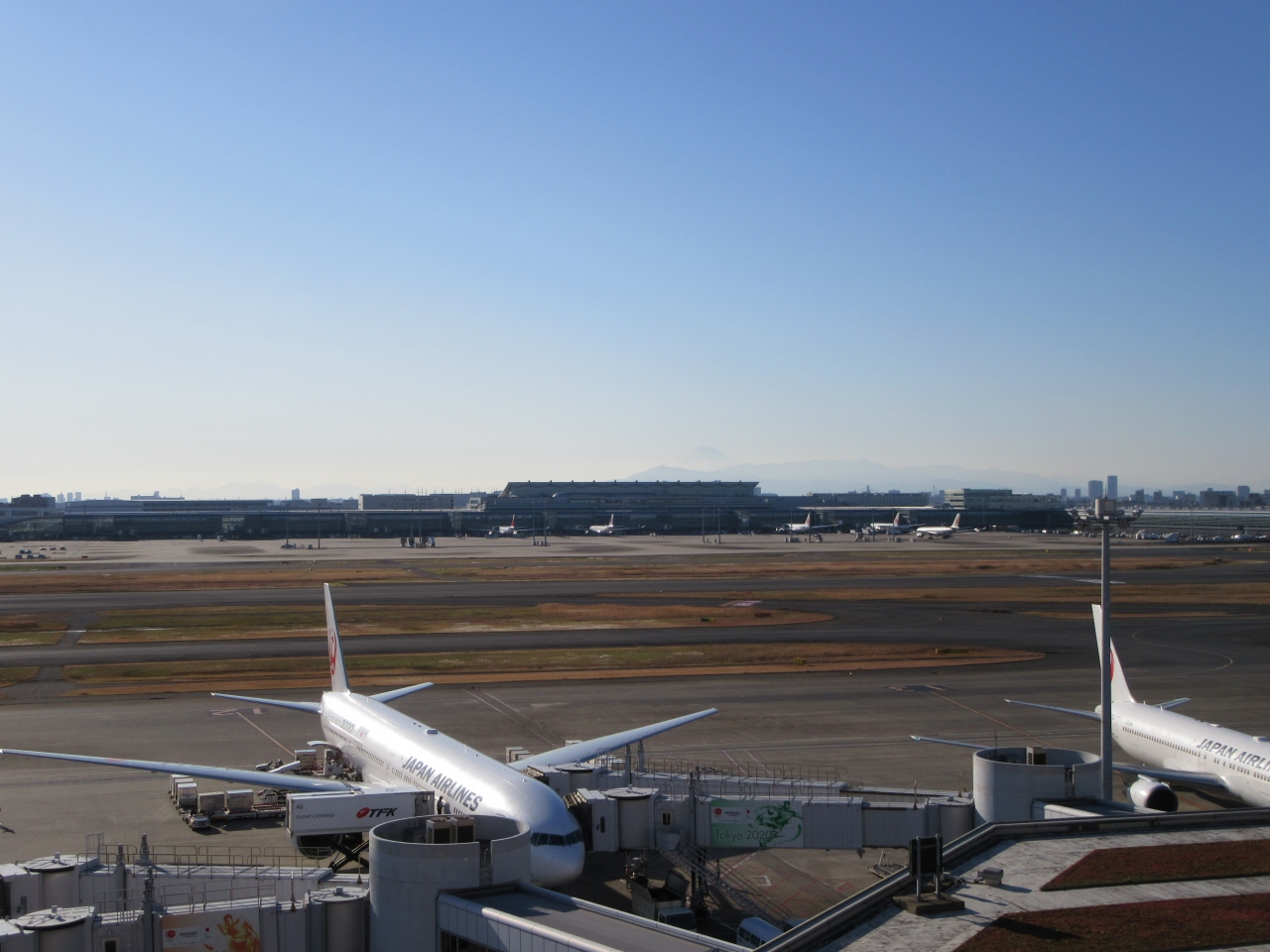 時間があったので展望デッキでぼーっと飛行機が離着陸するのを見てしまいました。お子さん連れのご家族が多く、お子さんたちが楽しそうに見ていました。かすかに富士山が見えましたー!!やっぱり日本人は富士山見えるとテンション上がりますね~。