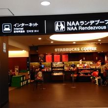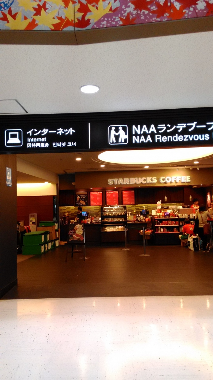 成田空港第二ターミナルの航空会社のチェックインカウンターを通った先にあるスタバで便利な場所にあります。保安検査の入口はすぐ近くだし、時間がある方はエスカレーターを上がればショッピングエリアにも行けます。たとえば家族で別行動して保安検査前に待ち合わせするのにも使える店です。