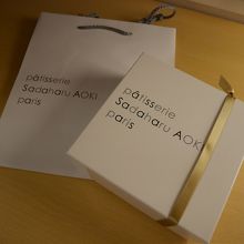 「パティスリー・サダハル・アオキ・パリ」は、関西に店舗を持たないため、関西からのお客さんへの手土産用にしばしば購入します。東京ミッドタウンには、ガレリアの地下1階に店舗があります。白い紙袋はとても洗練されたデザインでスタイリッシュです。
