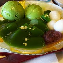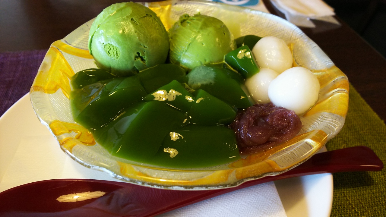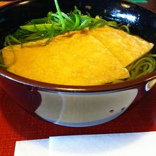 キツネ蕎麦と生茶ゼリーを注文しました。キツネ蕎麦は茶蕎麦でモチモチして美味しく、生茶ゼリーは舌触りの良いフルフルとしたゼリーでした。