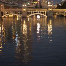 橋がいくつもかけられていて、水面に映るその橋のかたちがとても綺麗でした。南側を流れる土佐堀川とあわせてぐるぐるめぐるようにして散策を楽しむと大阪の「水都」とよばれるゆえんを感じることができます。