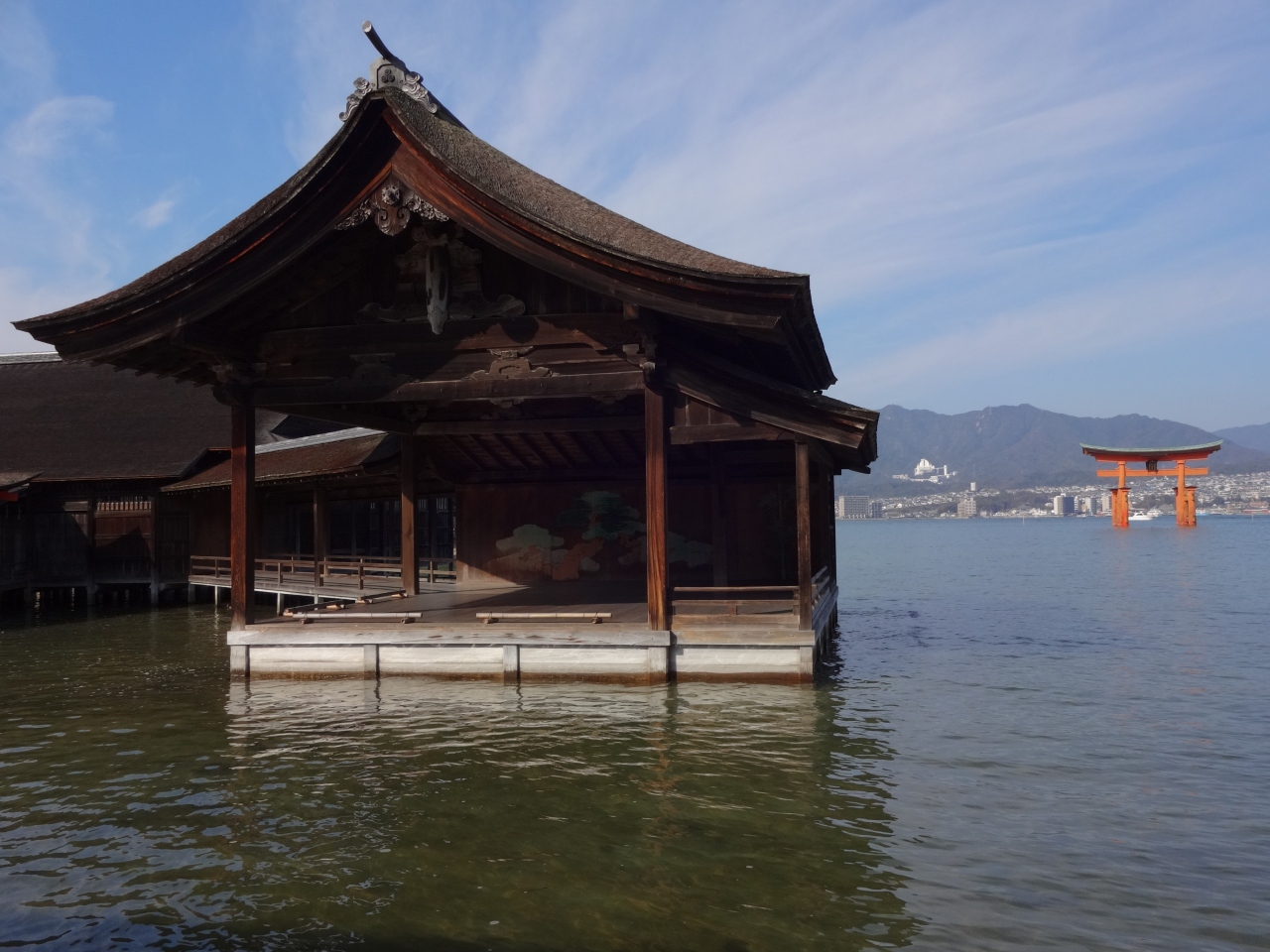この海に浮かぶ社殿が創建されたのは、そもそもは推古天皇の時代(6~7世紀)だといわれているが、今のような優雅な姿の社殿を造営したのは平清盛だそう(1168年)。