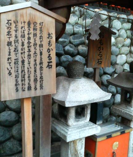 2つ並んだ石灯篭のてっぺんの丸い石が持ちあげられるようになっていて、そのときに感じる重さで願いが叶うかどうかがわかるとのこと。