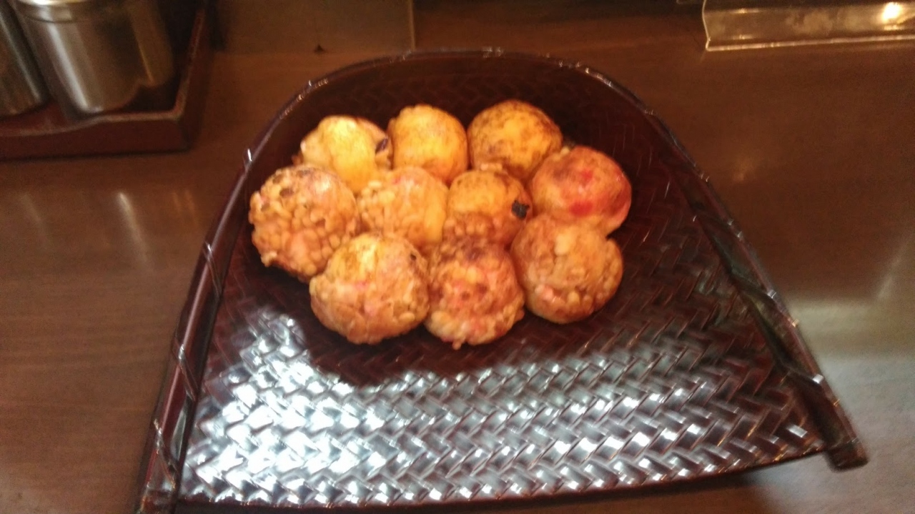 たこ焼きは10個で500円でわりと小さいので、コスパ的には普通かやや高めというところです。天かすがたくさん入り、タコは歯ごたえがあり、中はとろとろと大阪らしいたこ焼きです。