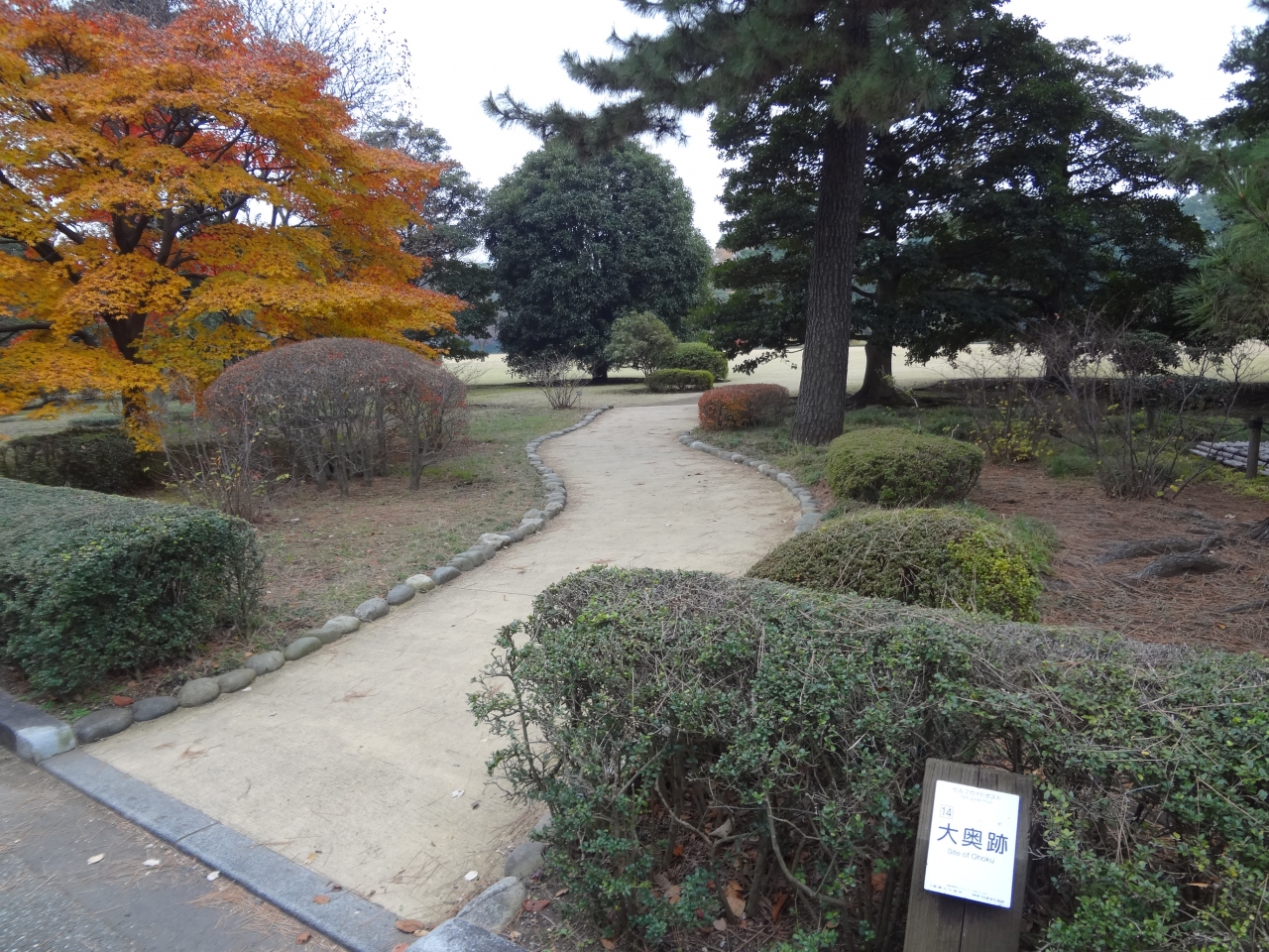 皇居東御苑の一画に「大奥跡」を記す案内板を見つけました。本や映画などでもしばしば描写される「大奥」がこの場所にあったのかと思うと、あまりに何もない今の光景とのギャップに驚かされます。その片鱗すら残っていないことが惜しまれます。