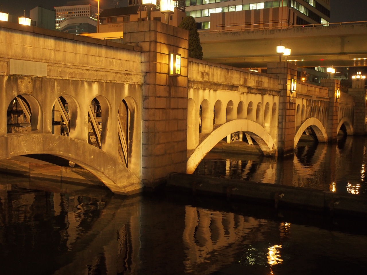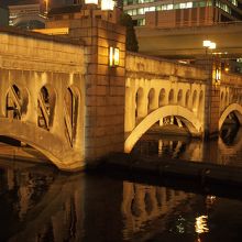 写真のようにライトアップされていて、さらに魅力がアップしていました。水面に映る橋の形もとても素敵でした。